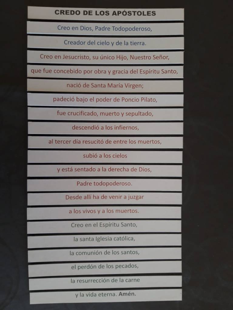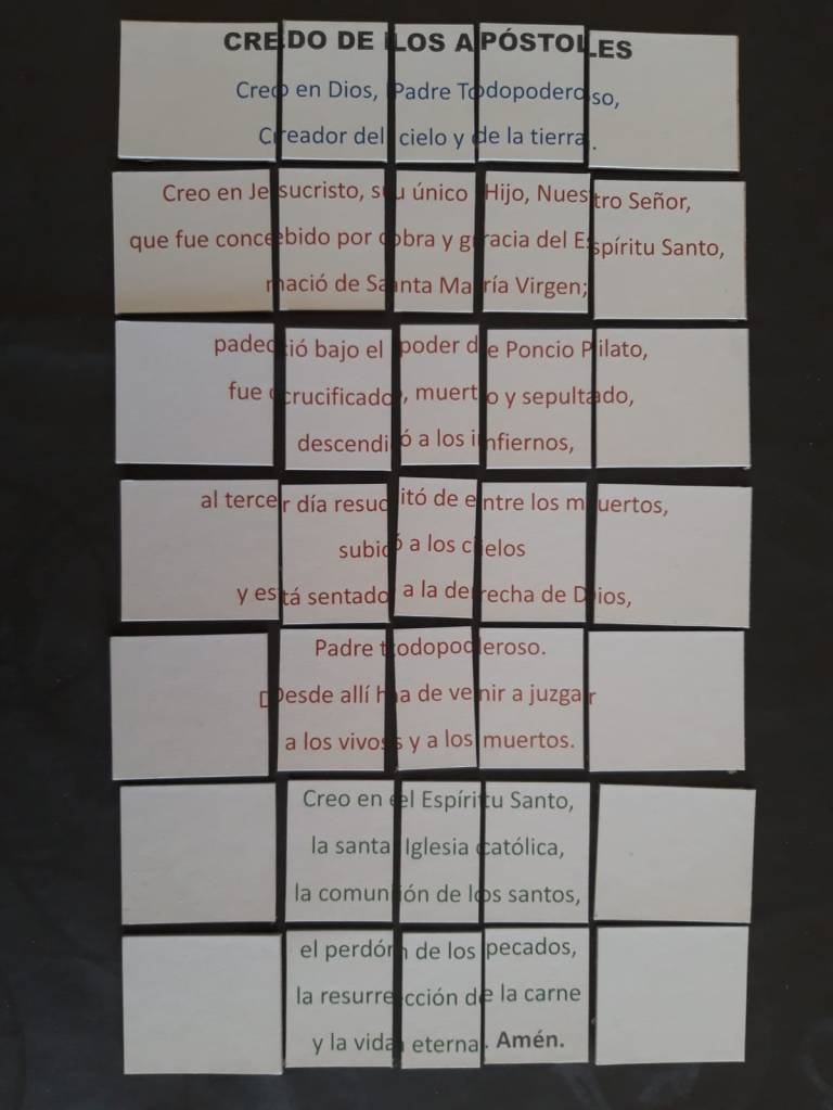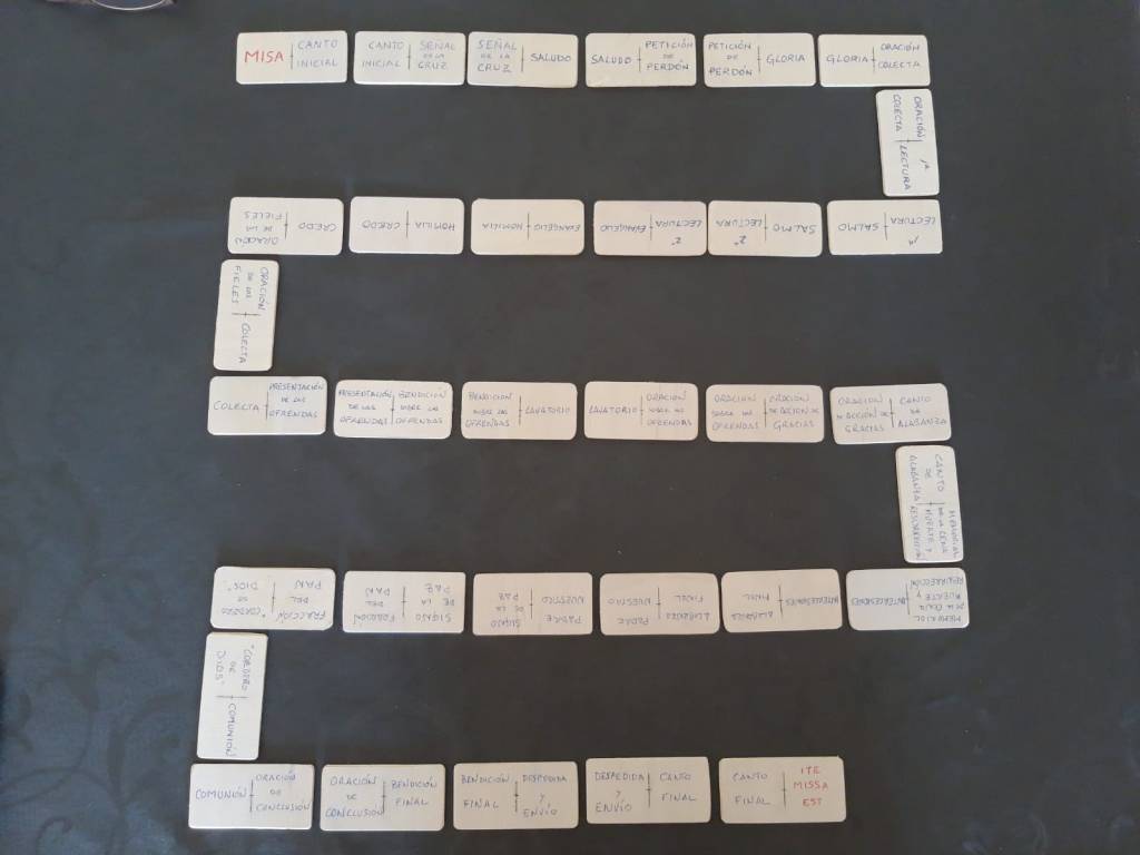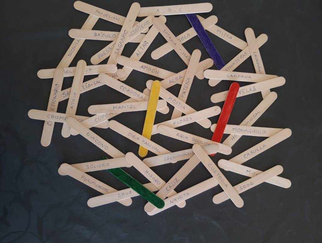 Recientemente hemos empezado a crear juegos para trabajar de forma lúdica algunos temas como las oraciones, los elementos de la liturgia o las partes de la misa.